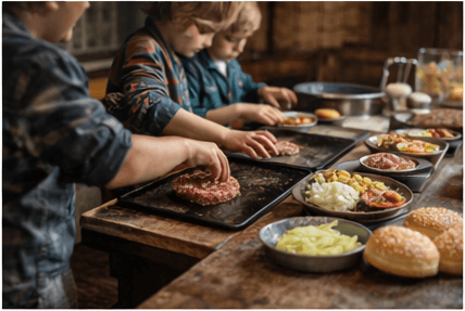 Doživetje vključuje vse sestavine in celotno vodeno delavnico. Otroci bodo sami oblikovali Angus burger, sodelovali pri pripravi in peki ter si pripravili svoj končni burger. Ves čas bodo imeli na voljo domač bezgov sok in svežo limonado. Delavnica je zasnovana za manjšo skupino, zato je pristop bolj oseben, izkušnja pa bolj kakovostna in umirjena. Na koncu sledi tudi kosilo, ki ga otroci z največjim veseljem pojedo, ker so ga soustvarili sami.